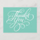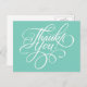 Fancy handwritten script 'Thank You' postcards in Turquoise. Perfect for Weddings, Birthdays, Christmas, Showers or any other occasion. Turquoise color 'Thank You' postcards, if required, choose any other color or add your own printed text, address or company name from the "Customize It" tab.