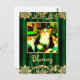 These fancy cats are all dressed up in hats for St Patty's Day, or perhaps St Catrick's Day, surrounded by deep blue and gold tripes and a gold-colored (not foil) border. The phrase Blarney is printed in a whimsical script on the front. The back is plain to give you plenty of room to write your own message or Irish wish.