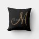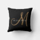 Fancy Stylish Black and Gold Monogram Script Throw Pillow