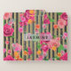 This customizable file folder beautifully marries functionality with aesthetics. The folder is adorned with a vibrant and elegant print that adds a touch of sophistication to your organizational tasks. The background of the print features vertical stripes in muted tones, creating a subtle yet stylish backdrop. These stripes are interspersed with delicate dots, adding a whimsical touch to the design. The print is dominated by a profusion of roses in various stages of bloom. The roses, rendered in vivid hues of pink, red, and orange, create a striking contrast against the subdued background. Each petal and leaf is detailed meticulously, lending a sense of depth and realism to the print. At the center of the folder, a customizable name is inscribed in elegant lettering on a translucent banner. This feature highlights the personalizable nature of the folder, allowing you to add a personal touch to your stationery.