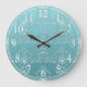 Fancy Teal Aqua Turquoise and White Damask Large Clock