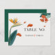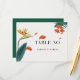 This elegant table number showcases a tropical flower with stylish typography, making it ideal for tropical weddings. You can customize the text, images, and fonts to create your own design.
