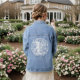 Fancy Victorian Calligraphy Monogram I Women's Denim Jacket. White Monarchia is an artistic antique font that swirls around the letter. This is an image. Personalize this template to exchange the image for your own. Edit it using the toolbar to add a name or quote.