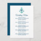 Fancy wedding menu with nautical boat anchor logo. Cerulean blue and teal color palette. Elegant template for classy marriage. Part of budget friendly collection set including stationery and decorations.