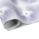 Delicate swirling patterns radiate symmetrically from a central point, creating a floral-like motif of a snowflake on pastel purple background.