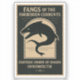 A haunting vintage-style poster featuring the emblematic "Fangs of the Forbidden Currents," representing the ominous depths tied to the Esoteric Order of Dagon in Innsmouth. The dark silhouette of a deep-sea predator glows with eerie green eyes and razor fangs, framed in a mystical arch design. Perfect for fans of Lovecraftian horror and deep-sea mythology.