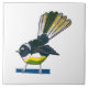 An illustration of a fantail or piwakawaka perched on a branch. This is drawn in the style of a risograph art print, this means layers of color build up to create new colors. This give the New Zealand bird the look or a retro art print.