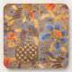 Set of 6 cork-back, high-gloss plastic coasters with an image of fantastic blue, gold, orange, and brown batik. See matching paper coaster and cloth and paper napkins. See the entire Bali Retreat Coaster collection in the FOOD/BEV | Coasters section.