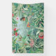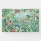 Fantastic fabulous mysterious rainforest tropics design with green tropical leaves, butterflies and red and pink tropical flowers.