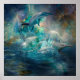 Fantasy Abstract Futuristic Dolphins In The Ocean With Sea Flower Painted In Watercolor. Magical garden design with stunning flowers mansion shrubs and as hand painted in all colors. A rich colored design with beautiful details Perfect for your luxury wall and home.