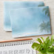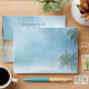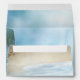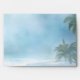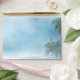 Lovely wedding invitation envelope, with graphics of lovely palm trees against a lovely blue sky and a sandy beach. Black script text return address, on the back flap, is ready to personalize for your beach theme wedding.