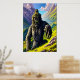 Large fantasy grayish beast sitting in the mountain side with mountain in the background. This is a AI generated art.