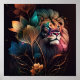 Fantasy, beautiful lion with flowers illustration. For all cat lovers. Image created digitally, generated by AI, based on my descriptive input and image combination. Read more about the process in the shop description