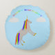 Fantasy Birthday Unicorn Rainbow and Clouds Custom Round Pillow