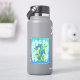 This vinyl sticker has a fantasy seahorse dragon with horns who is blue, green and white with horns and his tail wrapped around seaweed in various shades of green with floater water bubbles in a water like wavy frame in shades of blue.
