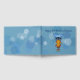 This custom guest book for your party or celebration has a fantasy owl with a blue head, yellow body and colorful wings and tail with big round blue eyes on a blue background with circles and dashes. Customize your information with the template.