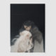 Fantasy book vellum art of main characters embracing - Strong tall dark-haired male warrior and shorter white-haired fae female, perfect for book lovers who read about morally gray characters.
