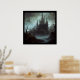 Are you looking for a unique and captivating design to add to your collection? Look no further than this stunning painting of a haunted castle in a stormy landscape. The tall castle towers with pointed spires, the dark and cloudy sky, and the barren and desolate landscape with dead trees and a river in the foreground all combine to create an ominous and foreboding mood. This image is sure to capture the attention of anyone who sees it and will make a great addition to any collection. Don’t miss out on this opportunity to own a truly haunting and unforgettable piece of art.
