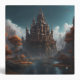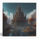 A fantastic castle is built onto a rocky promontory in a rocky fjord. Very beautiful fantasy picture!