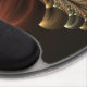 The plastic backing is nice and sturdy. The grippy pads underneath keep the mouse pad where I put it on my table. The pad the mouse sits on is cut well to fit the backing. The wrist pad is perfectly soft, supportive, and thick. I'm left-handed, and this mouse pad works just as well for me as it does for my right-handed friends. I'm the designer of HippieClecticHope products. I'm blown away by how well my intricate fractals turn out on the tangible items in the Zazzle Marketplace. This particular mouse pad ***appears*** like a 3D object... A mathematically-engineered rainbow black opal, inlaid under transparent fabric...