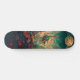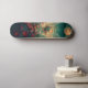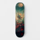 Fantasy cosmic art skateboard. An illustration of A whimsical steampunk style machine with floating eyes and tentacles, carrying an oversized coin on its back amidst surreal flowers in the style of detailed character design, colorful fantasy realism, dreamlike illustrations, surreal, whimsy. The background is an otherworldly landscape with floating islands and ethereal creatures