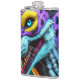 Well made flask, a little better than I had expected. Flask came in clear plastic box which gave it a nice presentation when I took it out of the zazzle packaging. Image is not printed on flask but on sticker. Don't know how this will hold up I haven't used it yet. This would make a Great gift! I plan to purchase more for friends! Cheers. I thought a little brighter than computer. Very crisp, writing wasn't