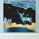 Vibe up your HOME with this good vibe Magical Mystical Crystal Deer Celestial design with Gold Glitter strips and Fantasy Abstract Agate TEAL BLUE Color Gemstone CANVAS PRINT.
