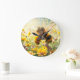 Fantasy Cute Bee Flowers Kiss Large Clock
