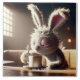Fantasy Cute Bunny Drinking Coffee Ceramic Tile