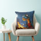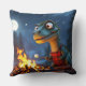 Fantasy Cute Dino Campfire Moon Throw Pillow