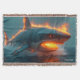 Fantasy Cute Fire Shark Sea Throw Blanket