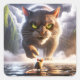Fantasy Cute Mouse And Cat Square Sticker