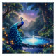 Fantasy Cute Night Puddle Peacock Poster
