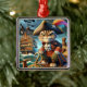 Fantasy Cute Pirate Cat Ship Metal Ornament