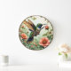 Fantasy Cute Steampunk Bird Flowers Large Clock