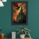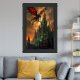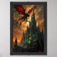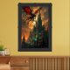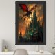 Fantasy Dragon soaring above Gothic Castle against Framed Art