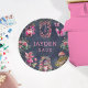 Fantasy girl bedroom or baby nursery floor area rug with a fairy design, a monogram, and a custom name in an elegant typography font. Features gold sparkles, a navy blue background, and illustrations in pink and green including flowers, butterflies, a lantern, a mushroom, a floral wreath, and a door.