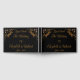 A fantasy, fairy tale designed guest book with gold, jewels, and dragonflies. Personalize with the bride and groom's names and the date.