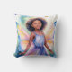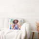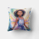 Throw pillow with a joyful child fairy with colorful butterfly wings standing in a flowing purple dress, surrounded by butterflies and soft, dreamy colors. The scene conveys a sense of whimsy and magic in a vibrant, nature-inspired setting.