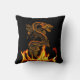 Fantasy lover's decorator throw pillow done in black, with cool graphics of a Chinese style fire dragon coming out of fire flames, along the bottom. Customize to add text to this striking pillow. Great gift idea for your favorite dragon fan.