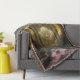 A quality printed throw has its advantages. This is a much finer weave throw than its loopier cousins, and though lighter, it is worth the investment for custom room accessorizing. The back is much prettier than the typical brown, and the fringe on the long sides very vivid, the selvage nicely done. Before photographing, I washed the throw in cold water, delicate, with a thicker woven throw the same size. On tumble dry low, this throw was dry in half the time as the other. This is a very practical quality if you use throws for furniture covers or to wrap up in frequently. The sleekness of the fabric makes it a great layer for accenting or protecting without the feeling of sitting on too much stuff. Perfect for napping or when you feel a light chill coming on. The color printing is beautiful and on this fabric, matched the design and color of my Photoshop image. This is an advantage for blending room fabrics and colors. The fringe on the short sides prints the colors from the design image and therefore varies from the side fringe. I streaked a white fractal line through the plaid pattern to give the illusion of weaving. This printed as crisp as an illusory thread, and put some white in the short side fringe, showing another advantage of print vs loomed- for artistic purposes, line lines, detail, and color integrity can be planned and preserved. My loomed throws have color limitations and more of a needlepoint texture. Print throws reproduce an exact image. The throw felt a little stiff straight out of the package, but this went away in the first delicate wash. Of course I searched the wash water for ink or bleeding and there was none.