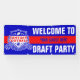 Welcome your draft party guests in style at your next fantasy football draft. Display an outdoor banner as a sure sign that your guests have arrived at the right place. This banner features an iconic red, white and blue shield adorned with images of a football, a football helmet, and stars. Hang it on an exterior wall, between two trees, on a chain link fence, etc. You can also choose an interior banner to dress up any room you wish to turn it into "draft central." Let's play some virtual football and party on!