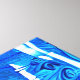 Canvas in a semi-abstract illustration of a fantasy forest with flowers, foliage, trees and birds, in shades of cobalt blue and white