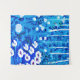 Tapestry in a semi-abstract illustration of a fantasy forest with flowers, foliage, trees and birds, in shades of cobalt blue and white