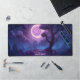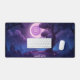 A dreamy fantasy scene of a glowing spiral moon over an enchanted forest path with whimsical trees and glowing lanterns. This is a great design for artful and colorful desk mat lovers.