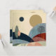 An abstract landscape of rolling textured hills with trees and plants in bold colors of red, orange, beige, green, and tan.