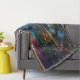 A quality printed throw has its advantages. This is a much finer weave throw than its loopier cousins, and though lighter, it is worth the investment for custom room accessorizing. The back is much prettier than the typical brown, and the fringe on the long sides very vivid, the selvage nicely done. Before photographing, I washed the throw in cold water, delicate, with a thicker woven throw the same size. On tumble dry low, this throw was dry in half the time as the other. This is a very practical quality if you use throws for furniture covers or to wrap up in frequently. The sleekness of the fabric makes it a great layer for accenting or protecting without the feeling of sitting on too much stuff. Perfect for napping or when you feel a light chill coming on. The color printing is beautiful and on this fabric, matched the design and color of my Photoshop image. This is an advantage for blending room fabrics and colors. The fringe on the short sides prints the colors from the design image and therefore varies from the side fringe. I streaked a white fractal line through the plaid pattern to give the illusion of weaving. This printed as crisp as an illusory thread, and put some white in the short side fringe, showing another advantage of print vs loomed- for artistic purposes, line lines, detail, and color integrity can be planned and preserved. My loomed throws have color limitations and more of a needlepoint texture. Print throws reproduce an exact image. The throw felt a little stiff straight out of the package, but this went away in the first delicate wash. Of course I searched the wash water for ink or bleeding and there was none.