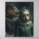 A fantasy design of two strange part fish part human twins in a horror movie style of art