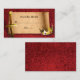 Fantasy knight's sword Jewish Bar Mitzvah flat place card or escort card. This medieval times fantasy sword and sorcery Bar Mitzvah place card features a red velvet look background, a simulated parchment scroll, a knight's, king's, or prince's sword, and a crown.
