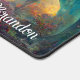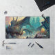 Fantasy lover's desk mat, with graphics of fantasy land with dragons. Personalize the black script text to suit your needs. Great for the fantasy game player.